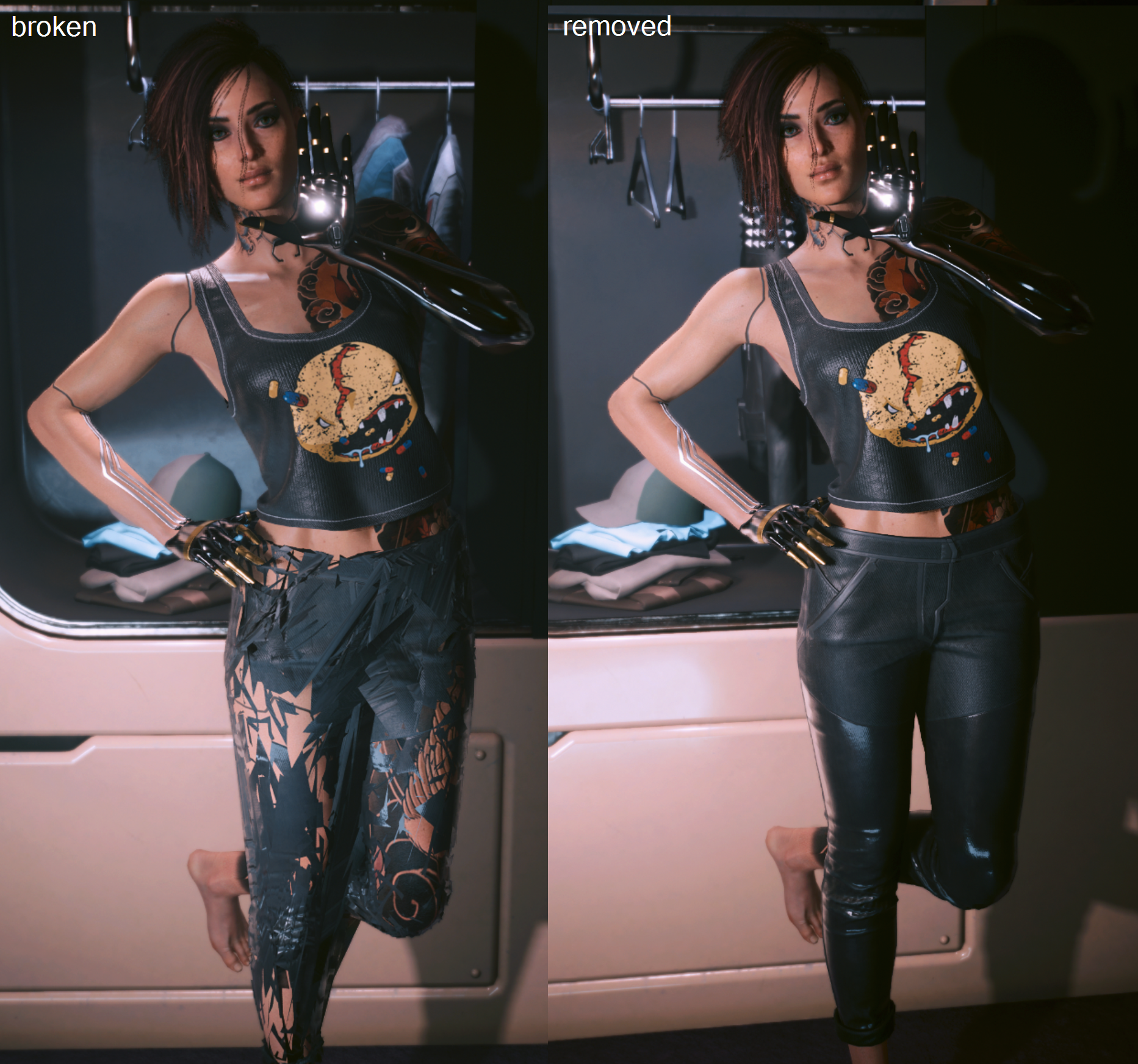 This page will teach you how garmentSupport works – the system that Cyberpunk2077 uses to tuck pants into boots and shirts under jackets. It contains theory, which you don't need to understand to use the system.