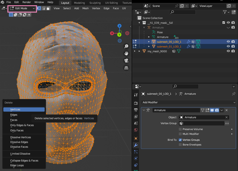 The [wolvenkit-blender-io-suite](https://wiki.redmodding.org/cyberpunk-2077-modding/for-mod-creators-theory/modding-tools/wolvenkit-blender-io-suite "mention") has a function to[ do this for you](https://wiki.redmodding.org/cyberpunk-2077-modding/modding-tools/wolvenkit-blender-io-suite#modelling). For the sake of completeness, the box below contains the full manual process, but we recommend using the plugin's Mesh Tool panel to do this.