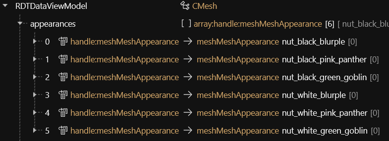 2. Repeat until there is an entry for every appearance option in your mesh