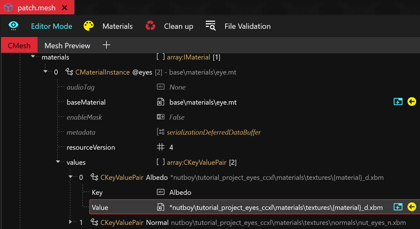 Now that we have added your new eye textures with their new names, we need to update the other files to use them.
