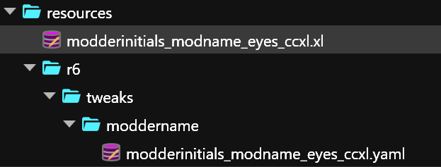 Check [this page](https://wiki.redmodding.org/cyberpunk-2077-modding/modding-guides/items-equipment/moving-and-renaming-in-existing-projects) on how to update file and folder paths inside the structure.