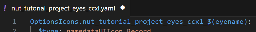 6. Copy and paste the first line of our .yaml into this `icon:` section. Then change `$(eyename)` to the color name you have open.
