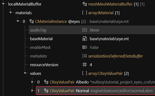 Next, scroll down to **localMaterialBuffer** and expand materials and values until you see **Albedo**.