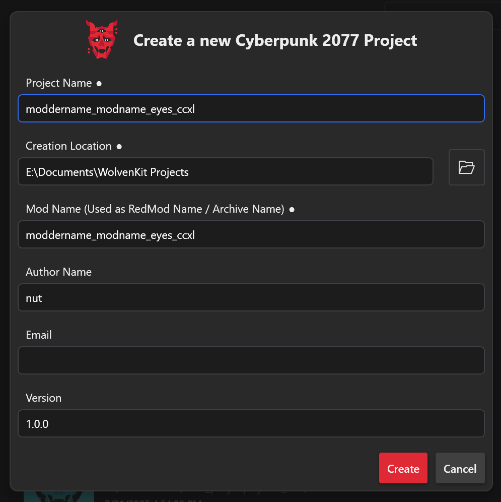 Start by making a new project in WolvenKit. Name your project.