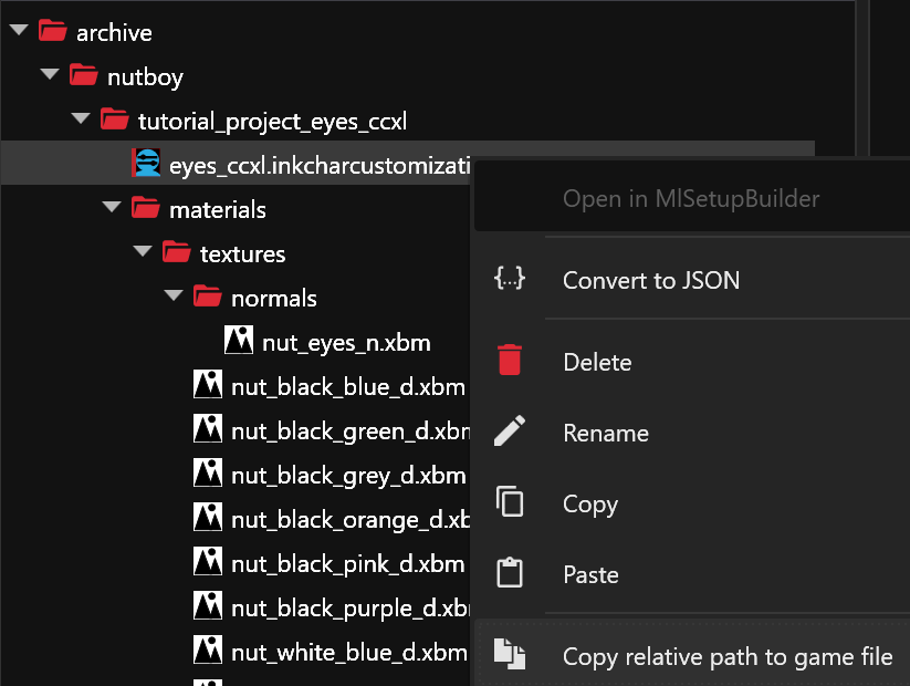 Next right click, and convert inkcharcustomization file to **.json**