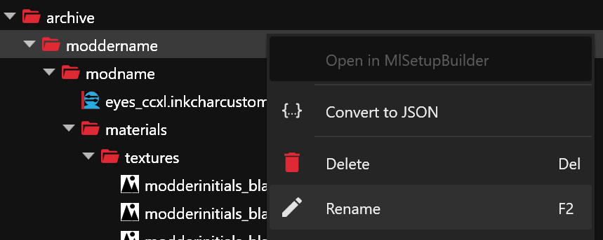 Next, rename the **.inkcharactercustomization** files with "Update in project files" checked.