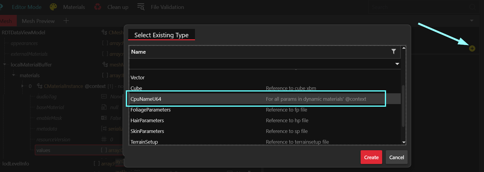 1. Create a material entry called `@context`. This must be the first material in your list: