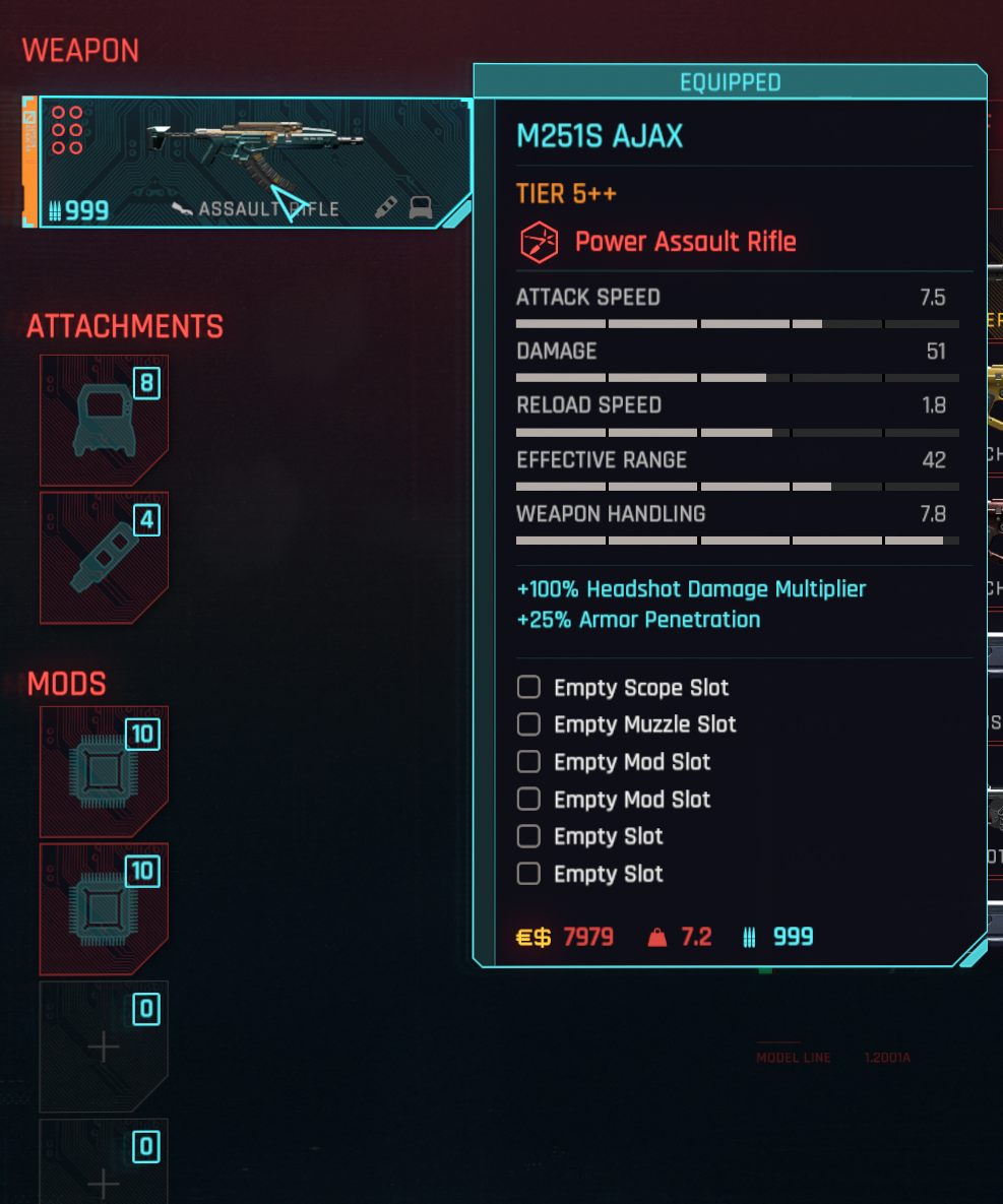 We are going to use Preset_Ajax_Pimp as you can see the modSlots are not being shown in the game