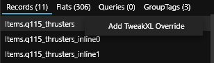 Do a right click into the first item and select `Add TweakXL Override`. Do the same for the `inline0` and `inline1`, but ignore the `rogue` and `weyland` versions, we don't need that, just the first 3 results shown in this image: