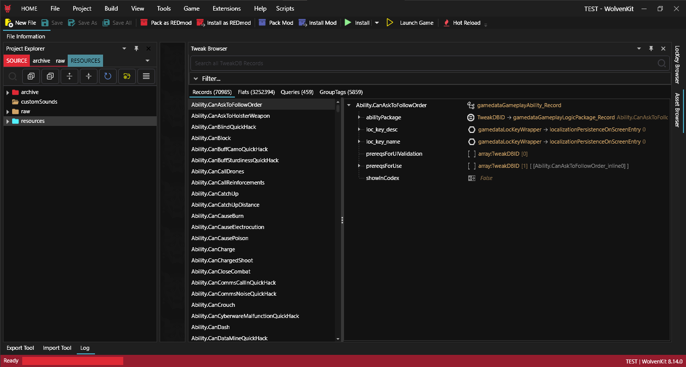 ### 2: Using Wolvenkit Tweak Browser