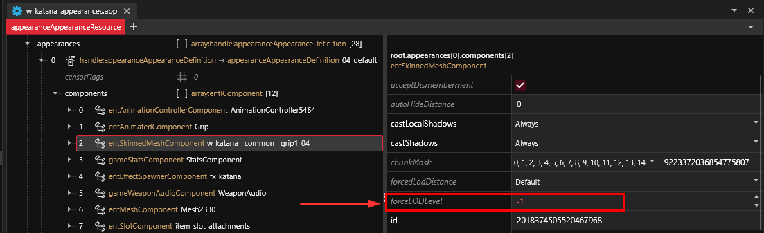 <figure><img src="https://1427525421-files.gitbook.io/~/files/v0/b/gitbook-x-prod.appspot.com/o/spaces%2F4gzcGtLrr90pVjAWVdTc%2Fuploads%2Fgit-blob-e551b9fb94681590eb11b7dd52c38a11744c34b2%2Fmesh_component_force_lod_level.png?alt=media" alt=""><figcaption><p>You can set this property in the <a href="../components/documented-components#equipment-hair">component</a></p></figcaption></figure>