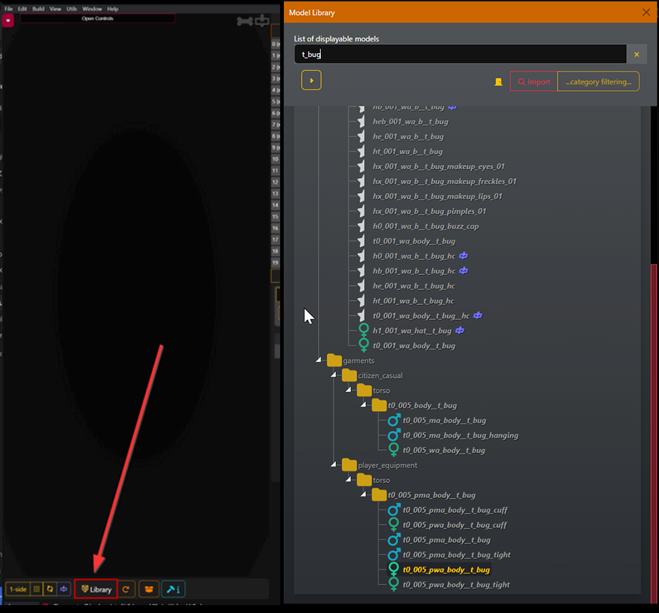This is where you can load models from the game for a direct preview which layer will affect which parts: simply click on the "Library" button.