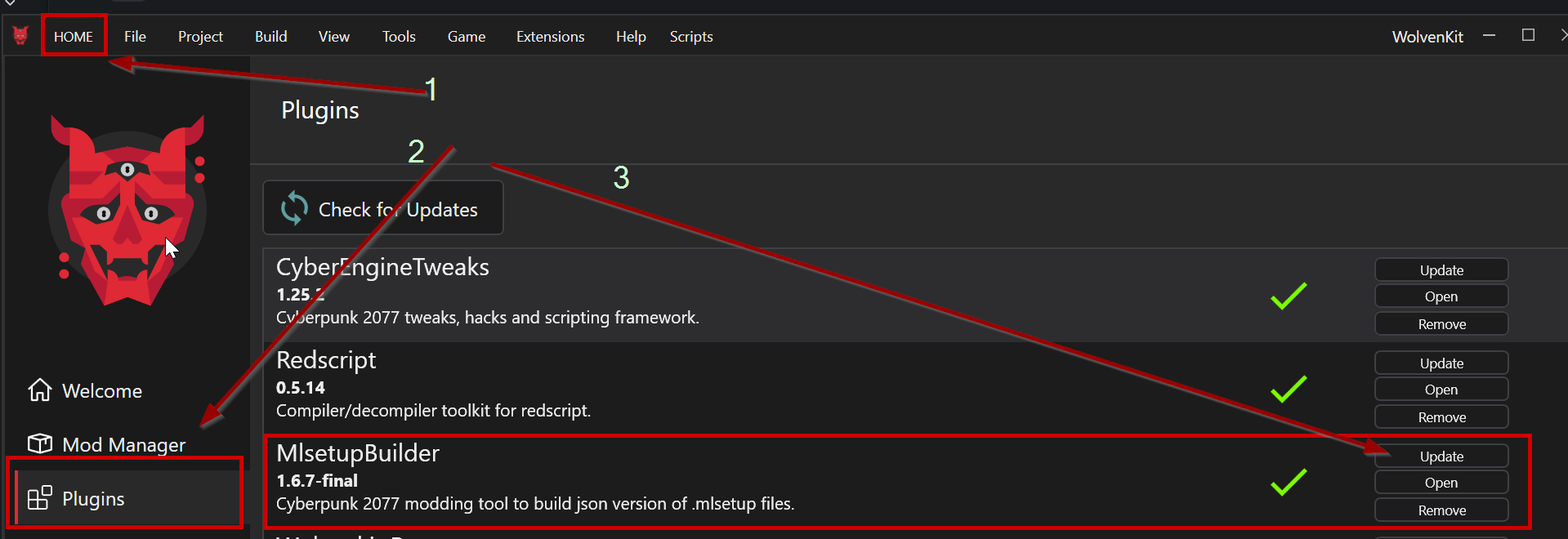 1. Click on "Home" in Wolvenkit's title bar