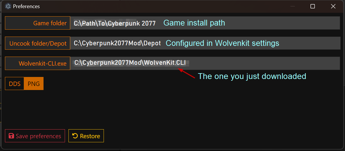 * `Wolvenkit-CLI.exe` is the one you just downloaded