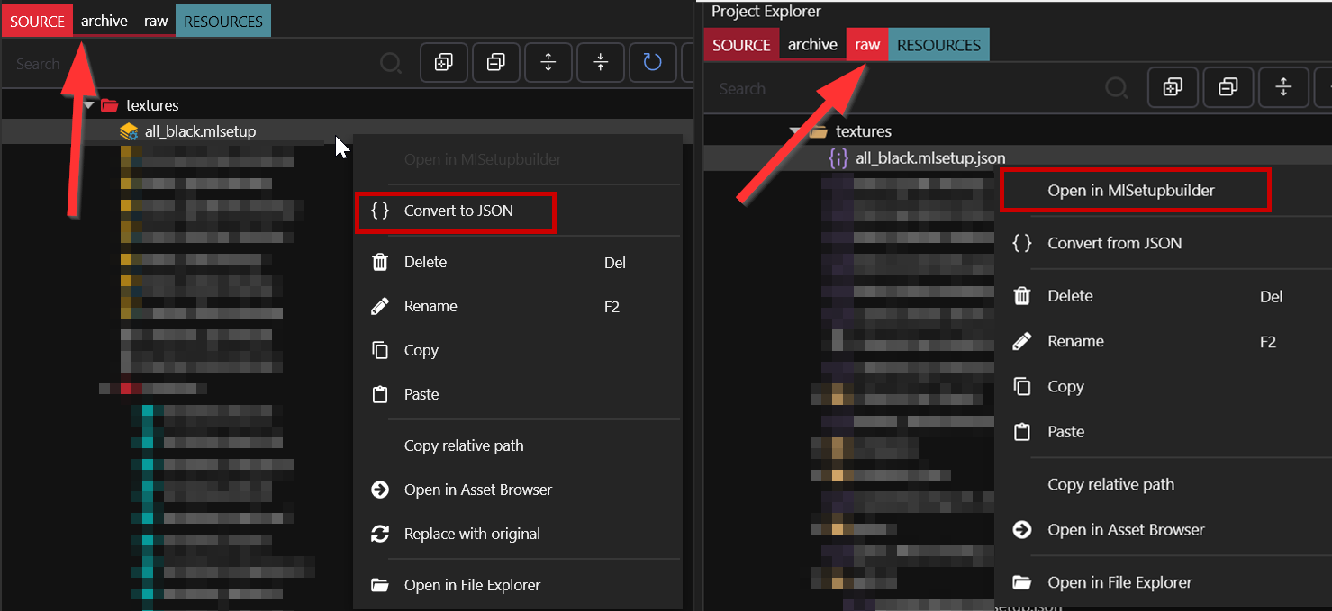 1. In the project explorer under Wolvenkit's `archive` folder, right-click on am `mlsetup` file\