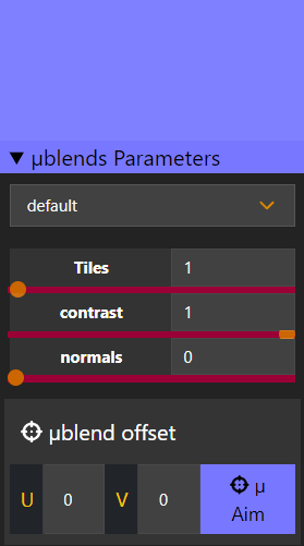 2. µblend: this manages the pattern and acts as a secondary, tiled normal map. Additionally, the `contrast` value can be used to block out parts of the layer to create patterns.