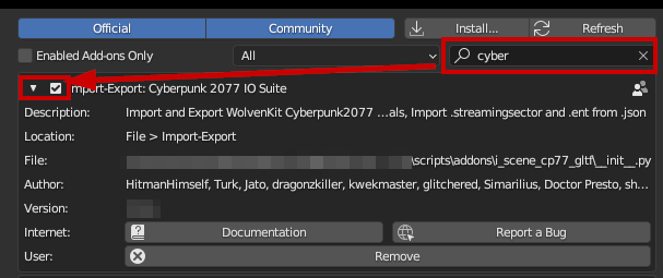 %APPDATA%\Blender Foundation\Blender\4.3\scripts\addons\i_scene_cp77_gltf