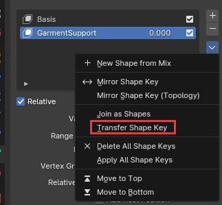 OK, that's a bit nasty, because it means you'll have to either **merge** the shapekeys, or create [garment-support-from-scratch](https://wiki.redmodding.org/cyberpunk-2077-modding/for-mod-creators-theory/3d-modelling/garment-support-how-does-it-work/garment-support-from-scratch "mention") (which is easier than it sounds like).