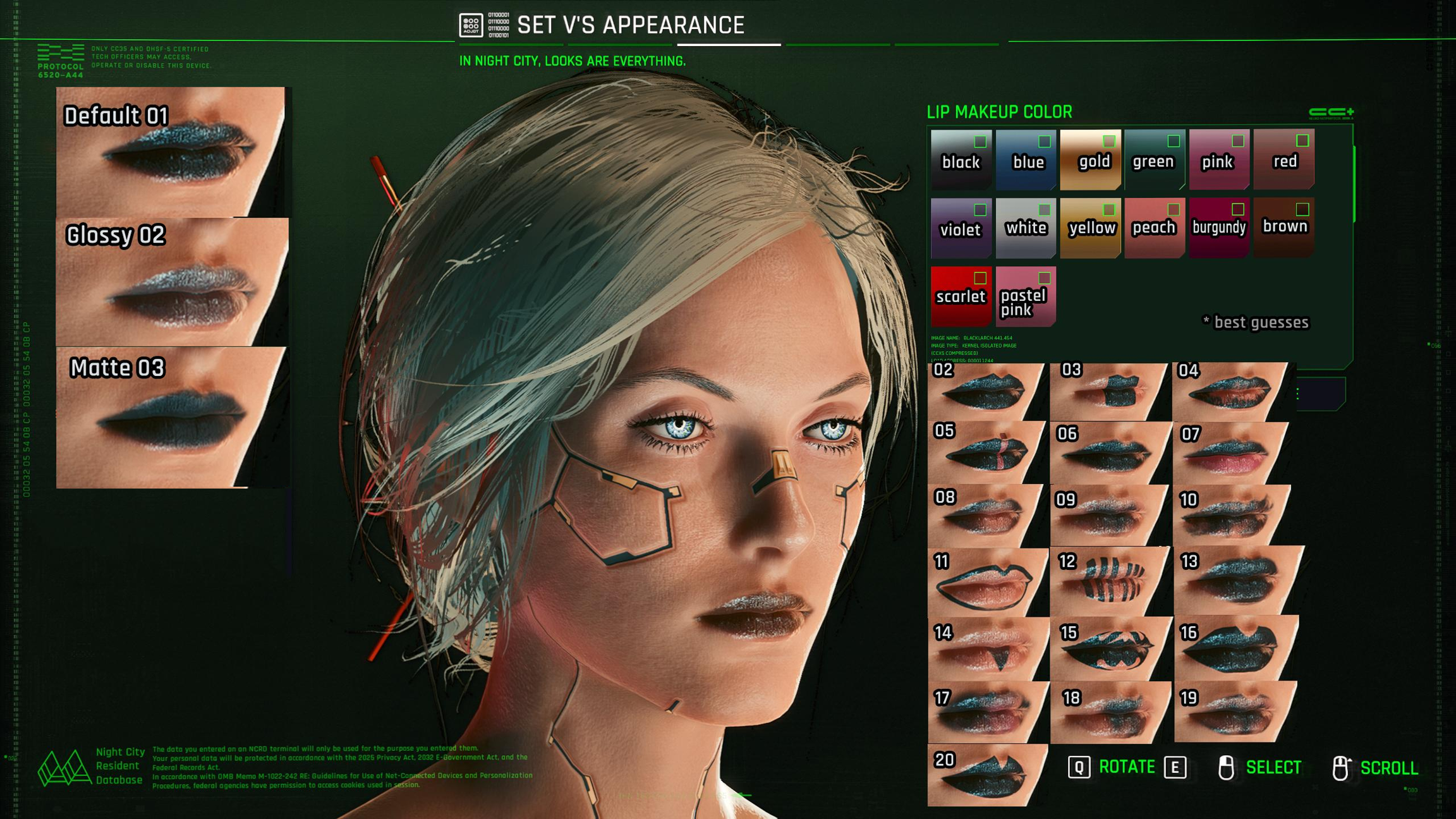 Lipstick colours and styles are sorted in (more or less) ascending order in the appearance list in the mesh.