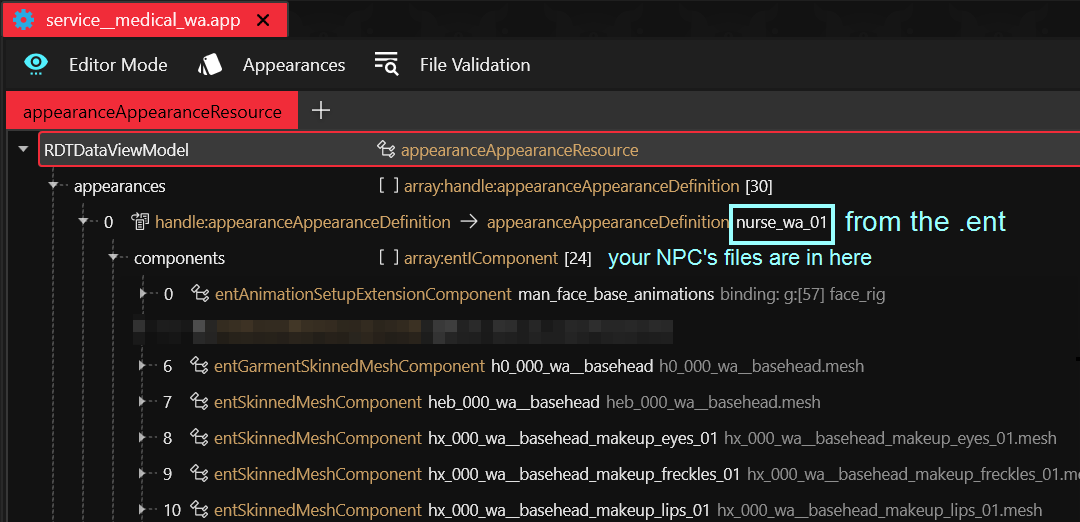 ## Reading the [.app file](https://github.com/CDPR-Modding-Documentation/Cyberpunk-Modding-Docs/blob/main/for-mod-creators-theory/files-and-what-they-do/file-formats/appearance-.app-files)