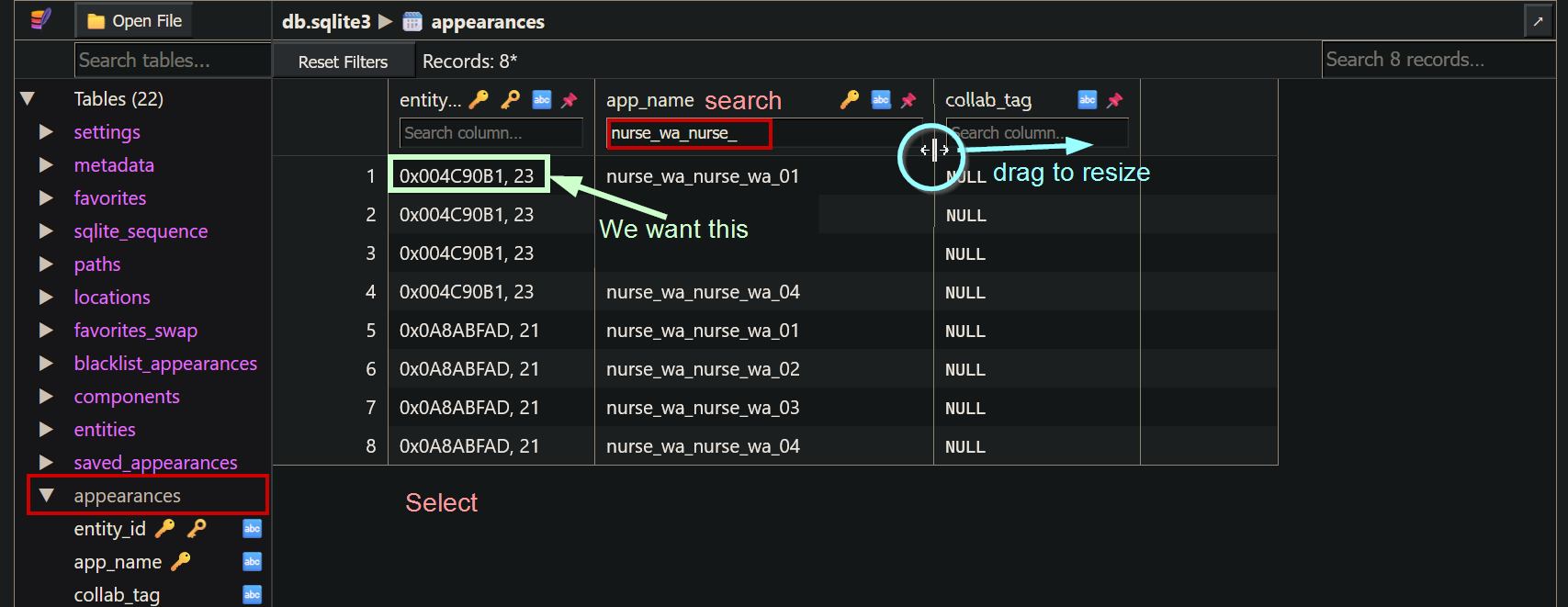 <figure><img src="https://1427525421-files.gitbook.io/~/files/v0/b/gitbook-x-prod.appspot.com/o/spaces%2F4gzcGtLrr90pVjAWVdTc%2Fuploads%2Fgit-blob-1cb85327666bf8684530273257eb72778cbed4d6%2Ffinding_amm_npcs_sqliteviewer_1.png?alt=media" alt=""><figcaption></figcaption></figure>