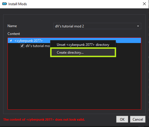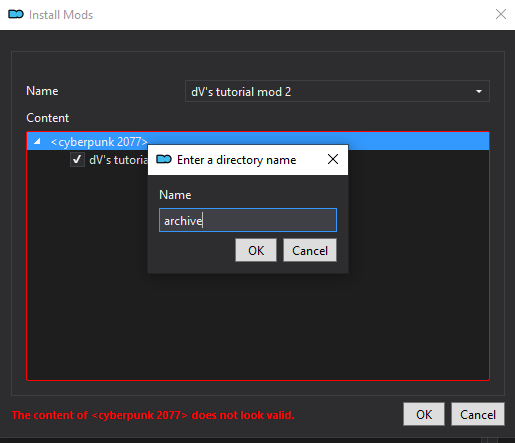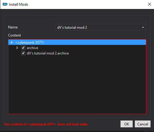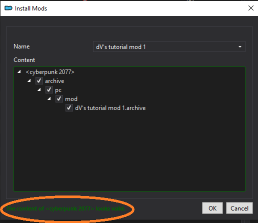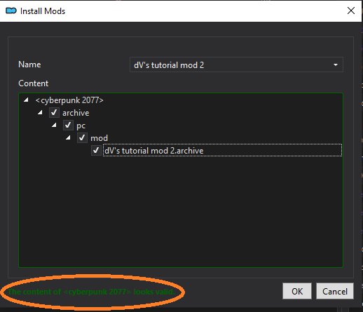 You can finalise the process by clicking `OK` to install your mod!
