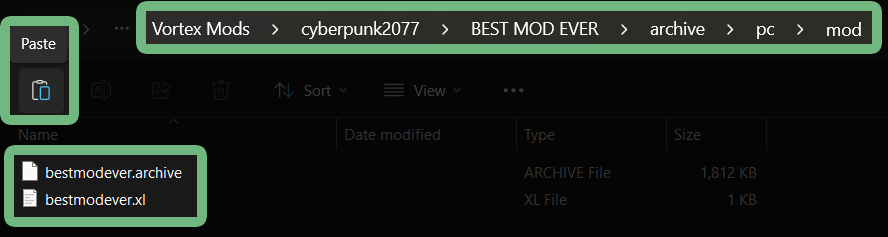16. Go to the `mod` folder we made in step 13 and paste the files (CTRL + V)