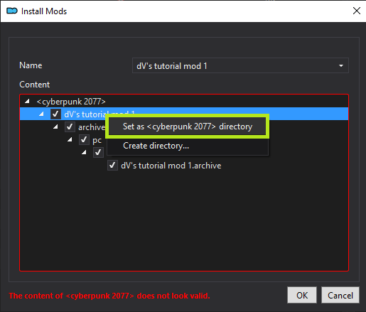Right click the folder and select "`Set as <cyberpunk 2077> directory`"