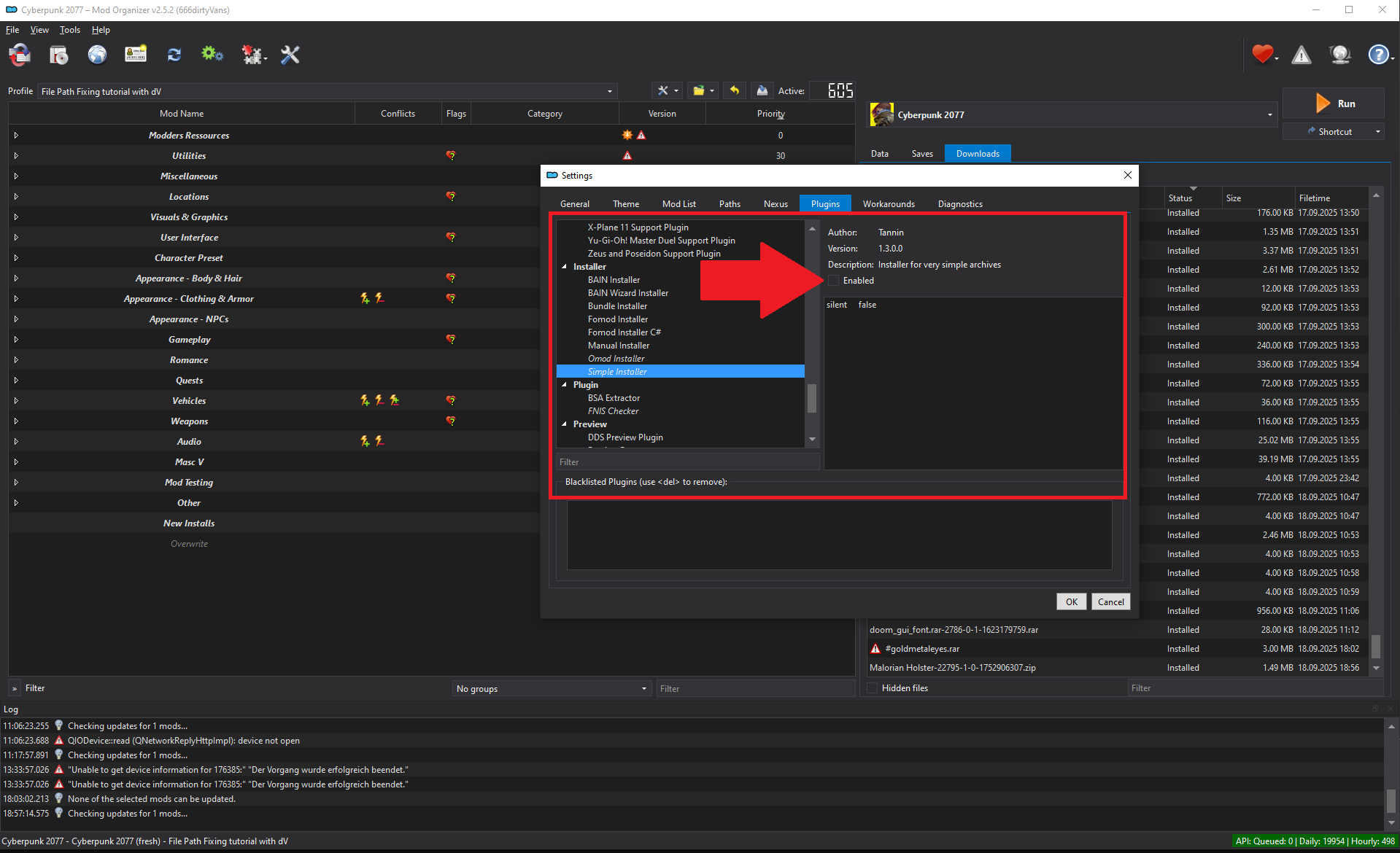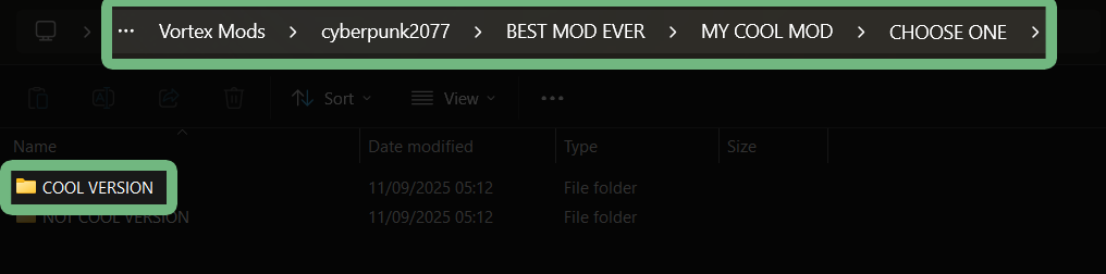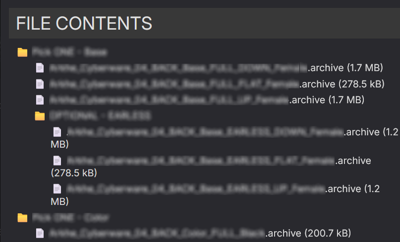For bigger and more complicated mods - like those that come with multiple `.archive` files to choose between - you can use the checkmarks to enable/disable files and folders.