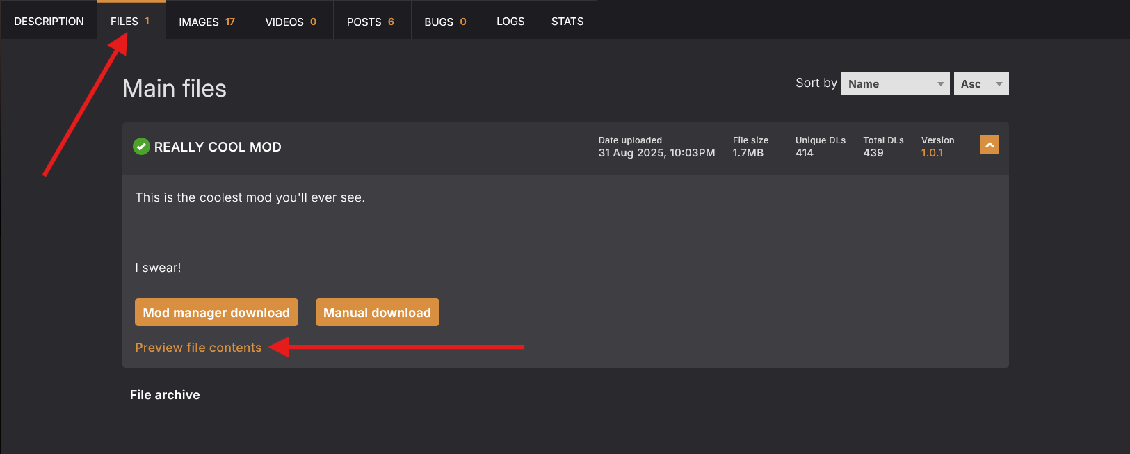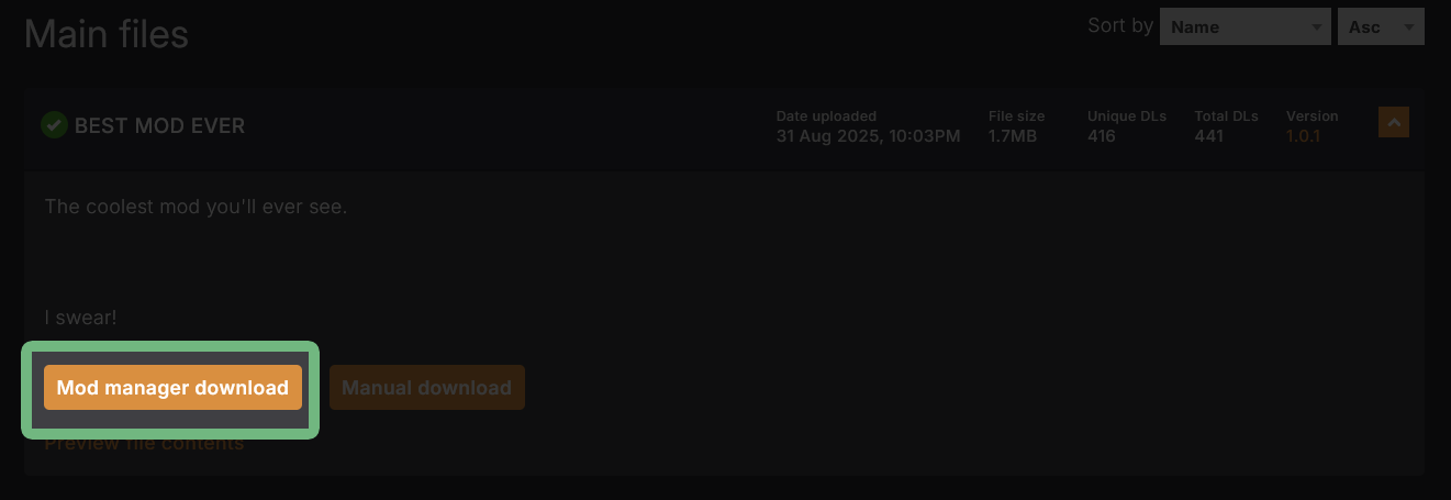 <figure><img src="https://1427525421-files.gitbook.io/~/files/v0/b/gitbook-x-prod.appspot.com/o/spaces%2F4gzcGtLrr90pVjAWVdTc%2Fuploads%2Fgit-blob-25a41c8a1a0c9c2b142cc253bc6adb9c0417c095%2Finstalling-nexus-preview-file-structure.png?alt=media" alt=""><figcaption><p>Some mod authors have this disabled, meaning you won't see this option on the mod page.</p></figcaption></figure>