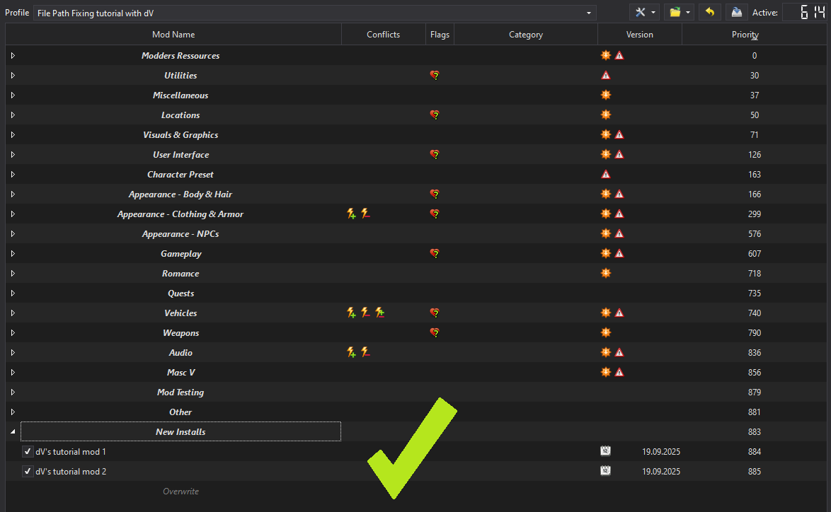 You should now be good to go! If MO2 isn't giving you the green light, or the folder structure looks different to this, check the below example for how to fix!