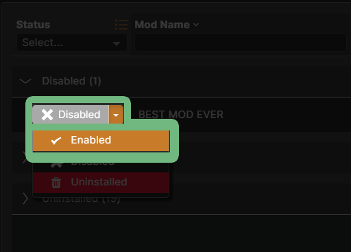 7. The mod should now be under "Disabled." \