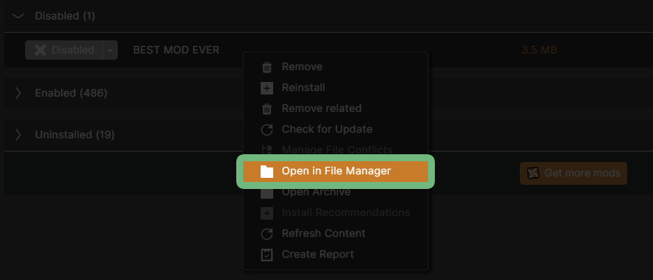 Right click the mod name again to bring up the menu.