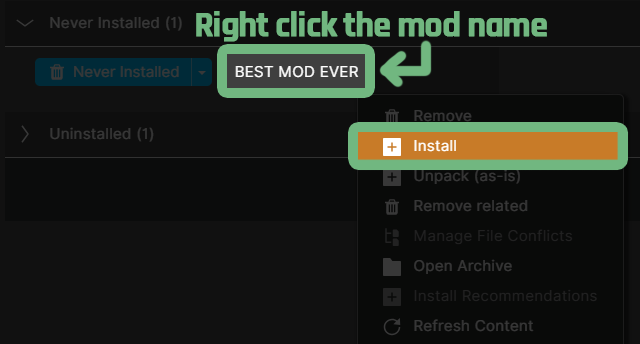 5. Right click on the mod name