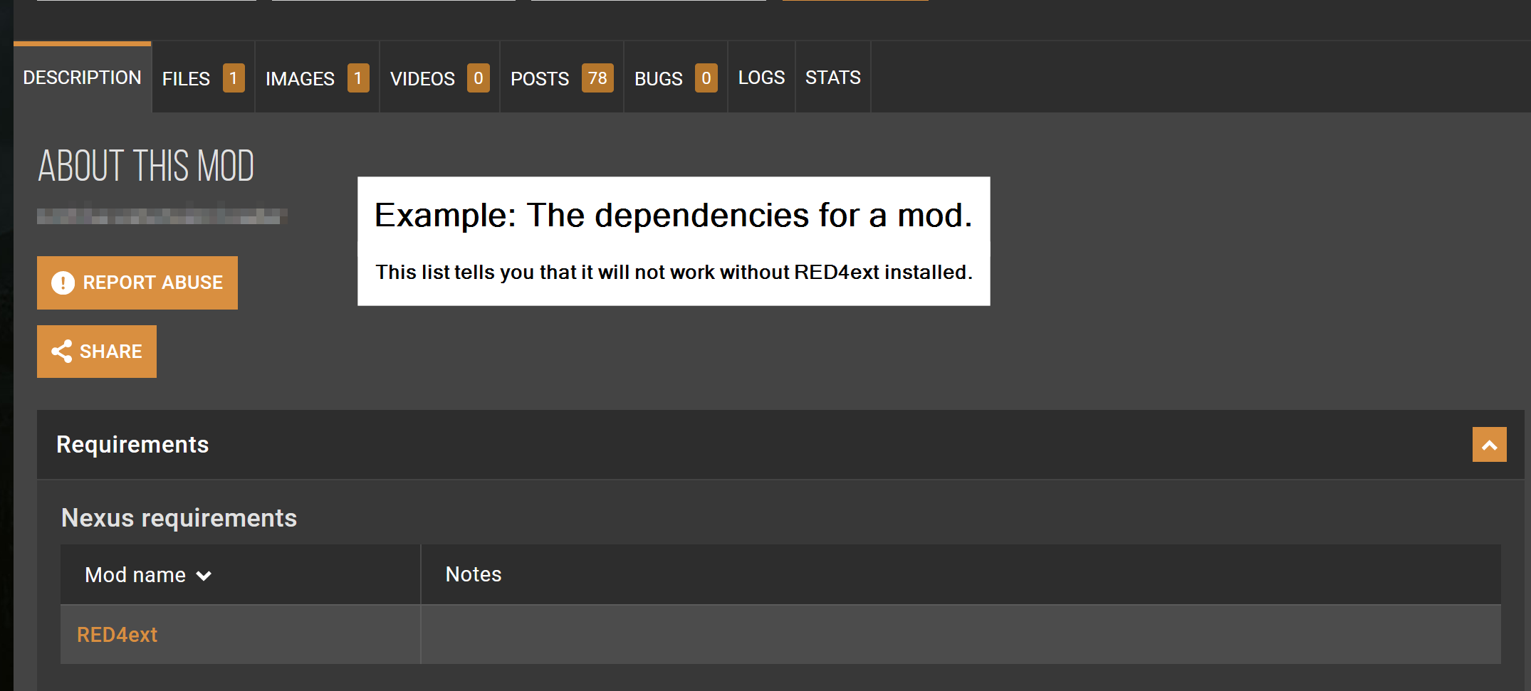 This means the mod you want to download **will not work** if you don't **download the listed requirements first**.&#x20;