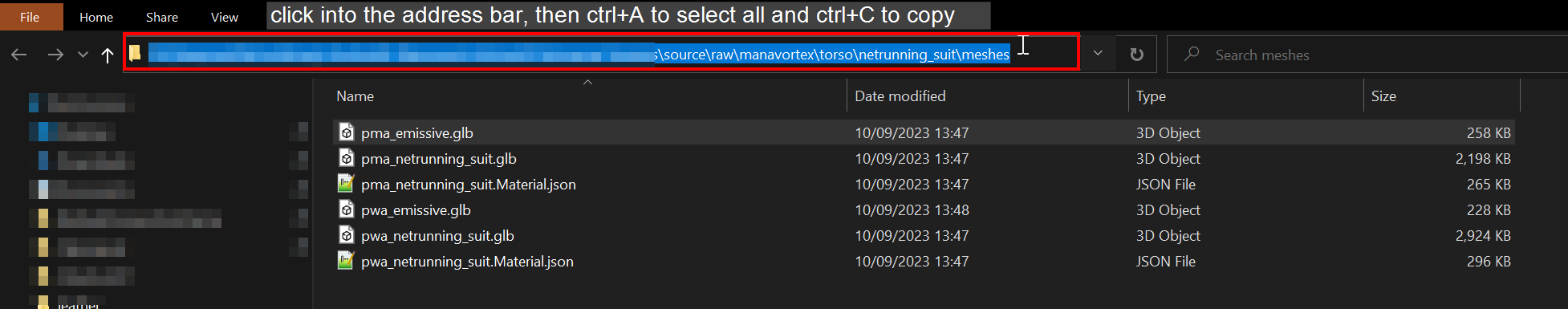 1. In the path bar at the top, paste the path from the [previous step](#windows-explorer-path).