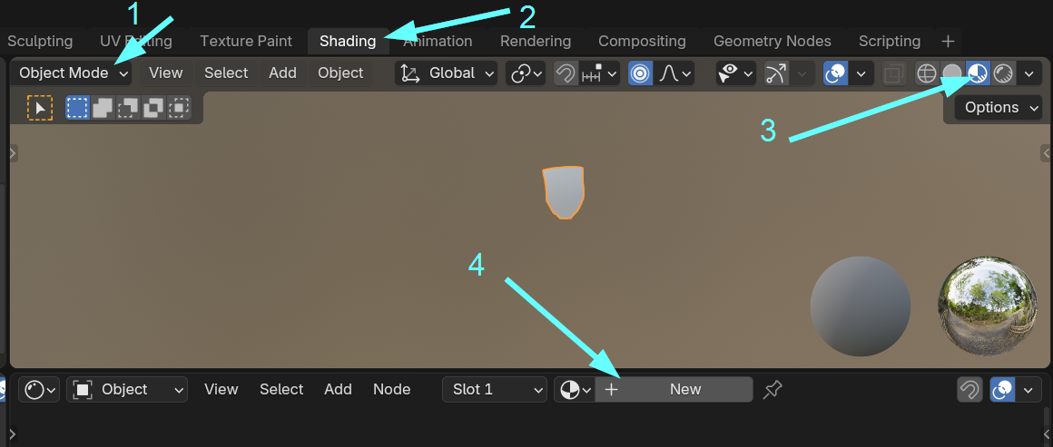 3. Switch to the Shading perspective