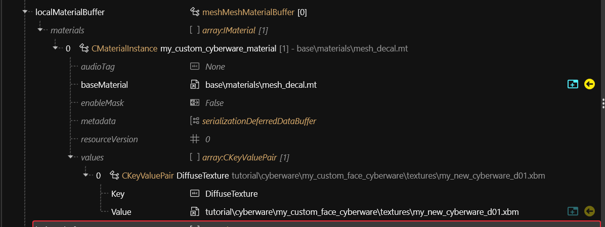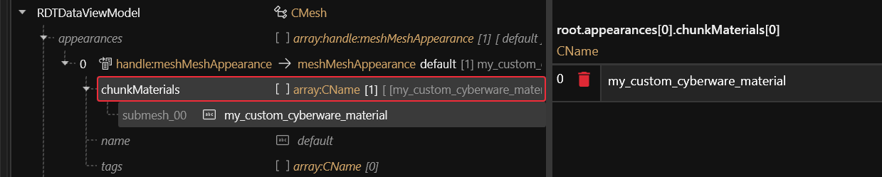 5. Give the chunkMaterial the name of the material that you will create next (e.g. `my_custom_cyberware_material`):