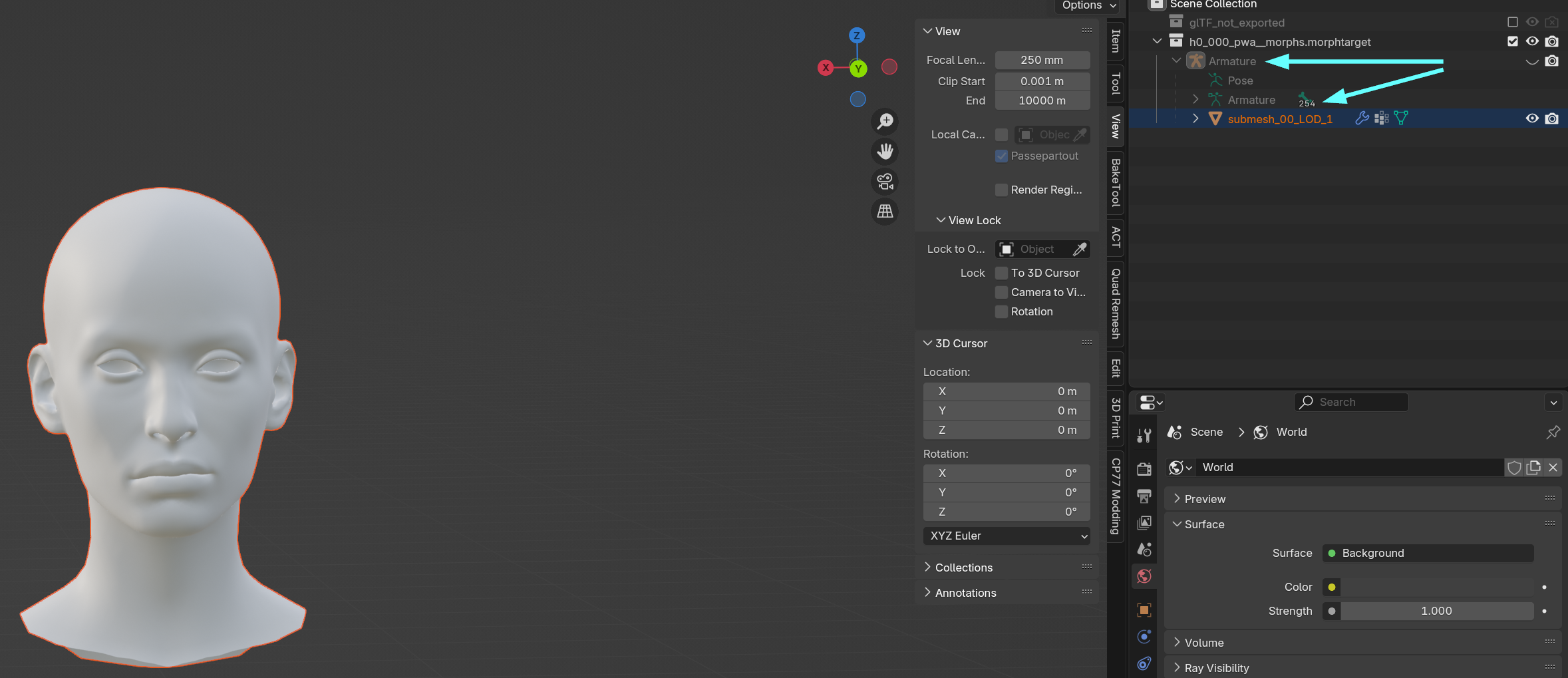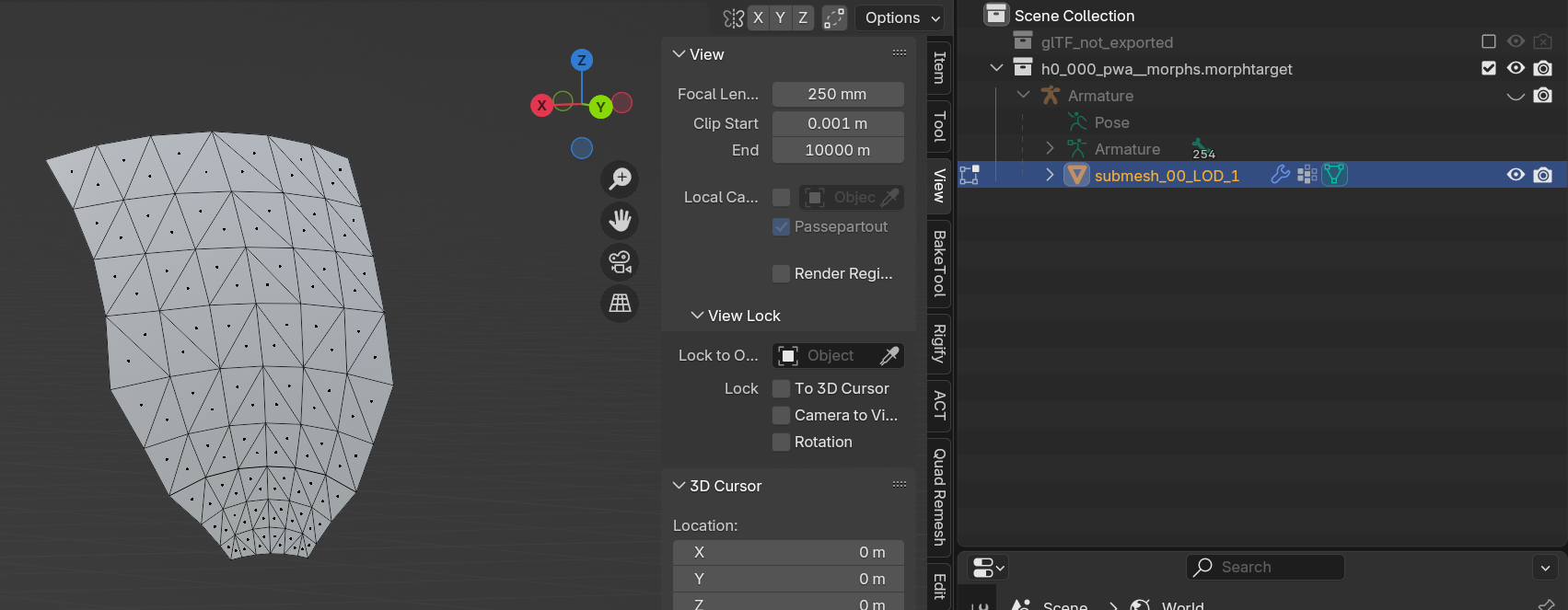 1. Open up Blender and [import](https://wiki.redmodding.org/cyberpunk-2077-modding/for-mod-creators-theory/modding-tools/wolvenkit-blender-io-suite/wkit-blender-plugin-import-export#importing-into-blender) the .morphtarget file. We will only work on that one!