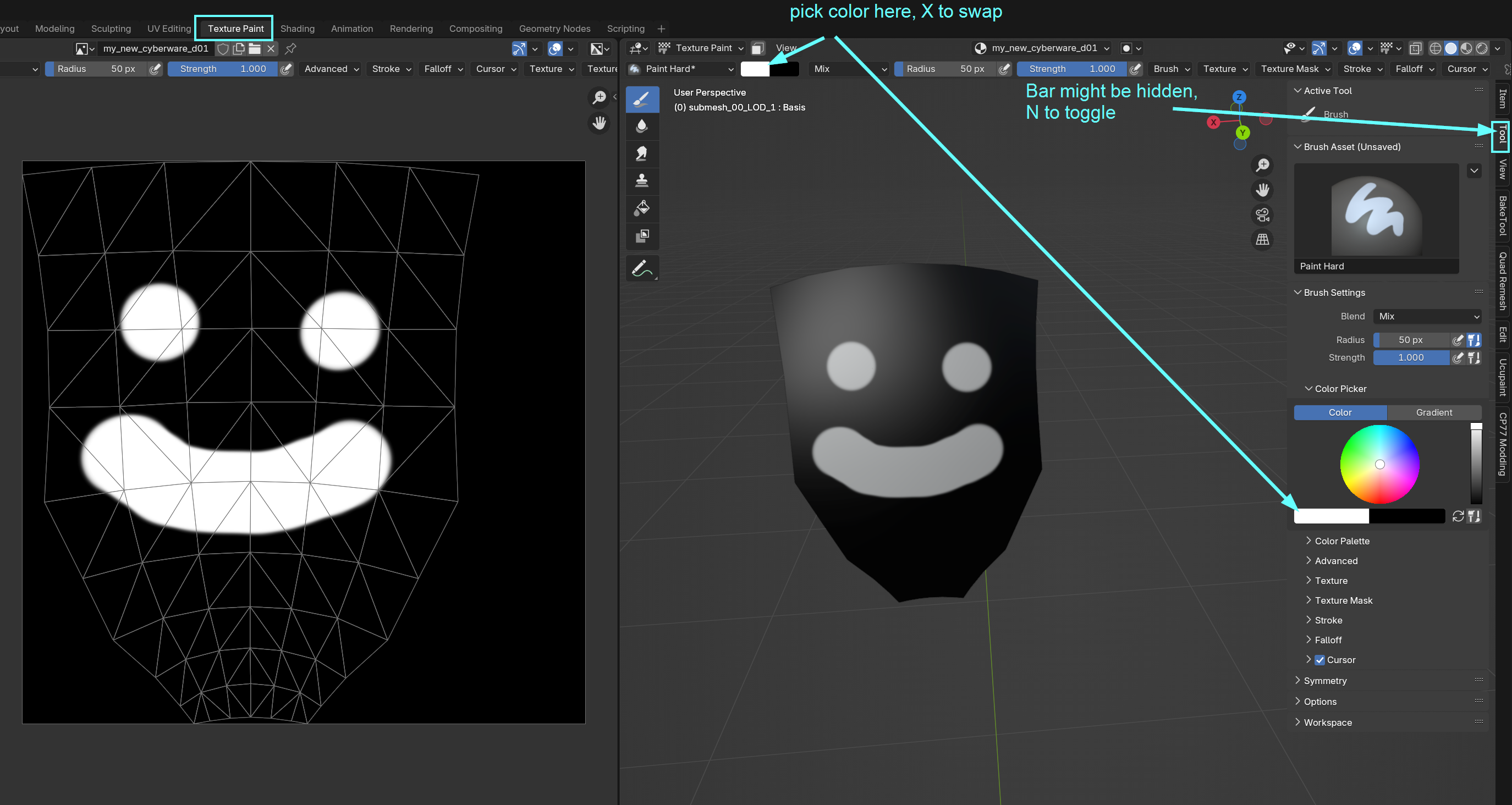 4. Save your texture inside the fodler as `my_new_cyberware_d01.png`