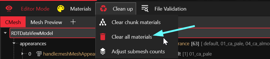 1. Open the `.mesh` file in Wolvenkit
