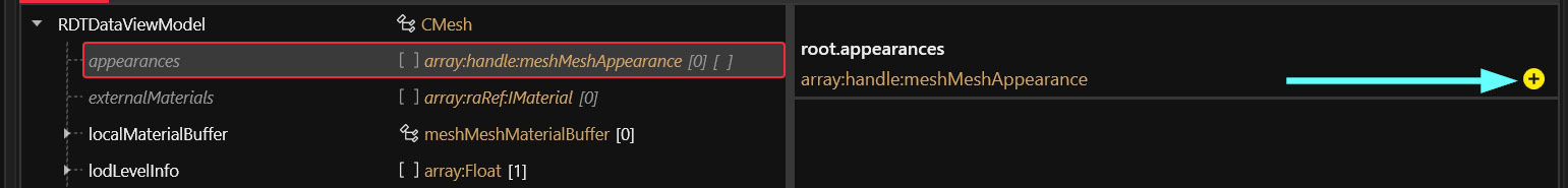 1. Select the `appearances` node, and click the yellow `+` button on the right: