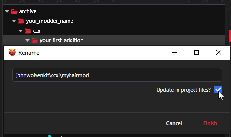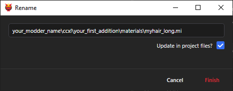 I recommend you to click on "Update in Project Files" as shown below, this helps with renaming paths in this whole guide and especially with the file that's in resources.