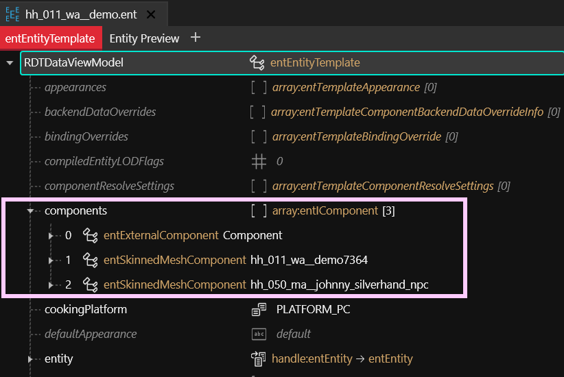 [Would you like to know more?](https://github.com/CDPR-Modding-Documentation/Cyberpunk-Modding-Docs/blob/main/for-mod-creators-theory/files-and-what-they-do/entity-.ent-files#root-entity) (You don't need any of this information to finish the guide.)