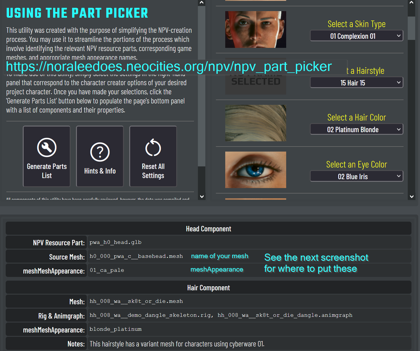 2. Using [NoraLee's NPV Part Picker](https://noraleedoes.neocities.org/npv/npv_part_picker)