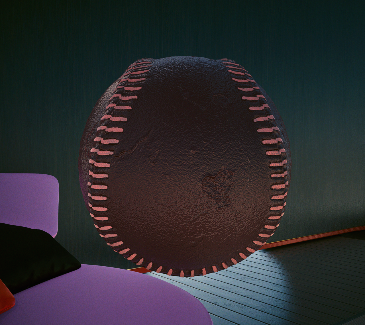 But the opposite is also possible: You can split off parts from the original object, putting them into their own submeshes. I have done this in the baseball example: the seams will get a texture, and the rest of the mesh will be coloured with a cyberpunk material.