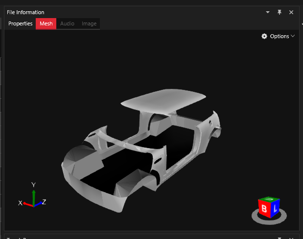 Select the updated .mesh file in the Project Explorer, and it will open in the File Information window. It should show your new mesh.
