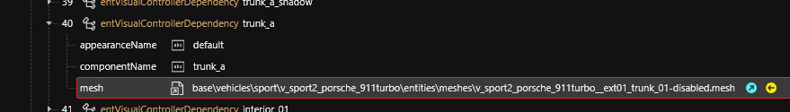 RDTDataViewModel > appearances > 0 > components > entMeshComponent/entPhysicalMeshComponent > meshname > mesh