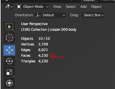 This number counts all visible objects in blender. Turning off an object’s visibility removes it from the count
