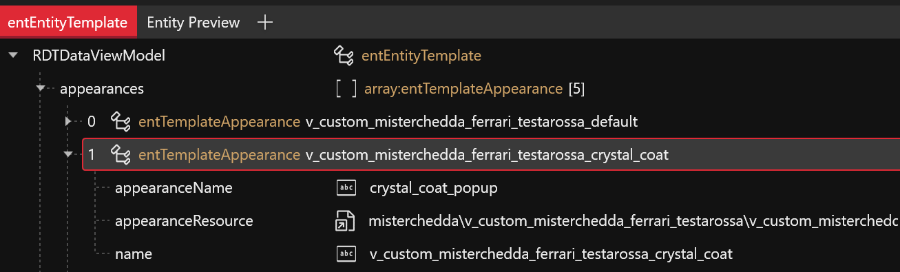 base\vehicles\appearances\sport\rayfield_aerondight__basic.app) and find its customizable appearance ( appearances > player_01_customizable_01)Copy and paste all